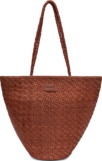Hand-woven leather shapes the bucket silhouette of this comfortable and convenient bag outfitted with thoughtful interior pockets for keeping your essentials organized.