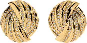 Pavé cubic zirconia illuminate glamorous stud earrings textured in twisted design and plated in 14-karat gold or rhodium for powerful shine.