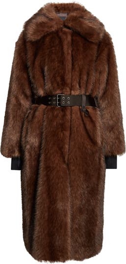 - 100% polyester faux fur, with 83% nylon, 17% elastane cuffs and leather belt