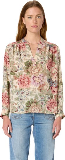 The Armande Blouse features a pretty floral print with large flowers for a very feminine look. Made from a soft and flowing fabric. This model runs slightly large, we recommend you take a size down.