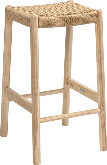 - Crafted with durable synthetic rattan weaving and a sturdy teak wood frame, this backless counter stool offers both style and function