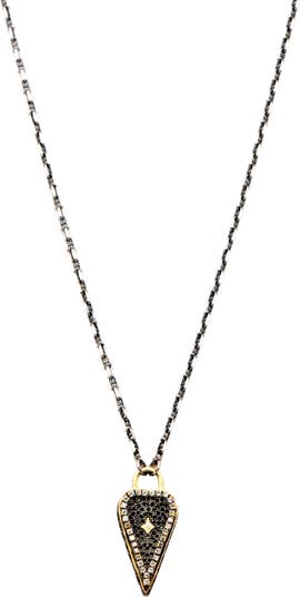 Black sapphire and brown diamond pavé brings powerful shine to this sterling silver pendant necklace highlighted by 18-karat-gold details.