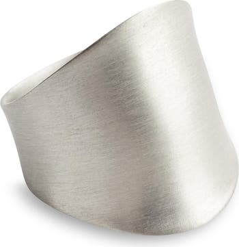 The wide curved armor band reflects the strength and protection of our tight knit community. This sterling silver ring is a clean and sculptural piece, while the natural curve and semi-matte finish adds a soft boldness to any look.