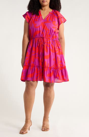 A swirling floral print adds to the sweet disposition of a tiered cotton dress framed by tiered sleeves and cut from pure cotton for a crisp and breathable fit even as the temp rises.