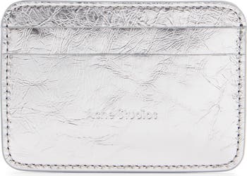Logo embossing enhances the dimensional texture of this slim, multi-slot card case that's crafted in Italy from crinkled metallic leather.
