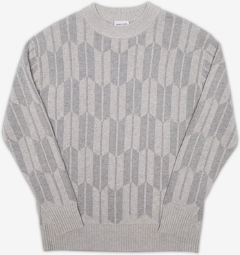 Our crewneck knit sweater. Soft, heavyweight 7-gauge combed cotton with rib cuffs. Textured yagasuri (arrow) pattern knit throughout. AKASHI-KAMA Knitwear — Grey Crewneck Sweater. Influenced from traditional styles with our modern approach.