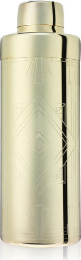 Shake up craft cocktails in eye-catching barware. Our stunning gold cobbler shaker incorporates the classic measured cap and strainer, with an electroplated gold finish and elegant etchings that recall Art Deco architecture.