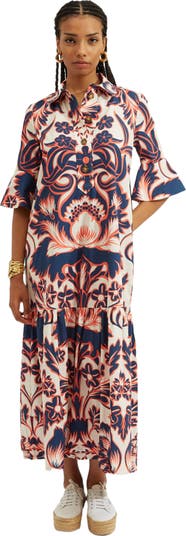 We're big fans of drama, and our Artemis Dress brings it. We've cut it in a voluminous shape for added wiggle room and comfort and given it a frisky touch with a pointed collar and frilled sleeves. New for the sunshine season, this beauty arrives in our lighter summer poplin to pack a punch in your vacation suitcase. Its namesake was the Goddess of the Moon, so we've pumped it up with a big frilled hem so you can dance under the moonlight.