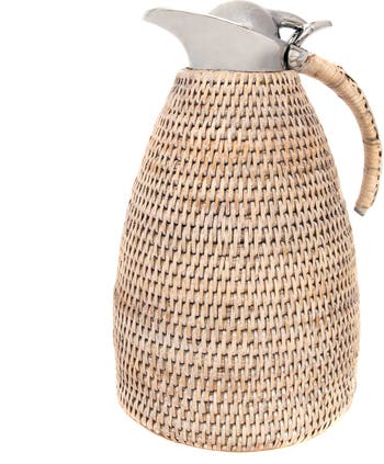 Dimensions: 6"x6"x12" This 1.5-liter stainless steel thermos/carafe will turn your next gathering into an event! A must add to your entertainment arsenal our rattan carafe will help you keep your drinks hot or cold for hours. Perfect for serving coffee, hot water for tea, cold water or any other drink. Products are handmade and each piece is unique therefore slight variations and imperfections exist.