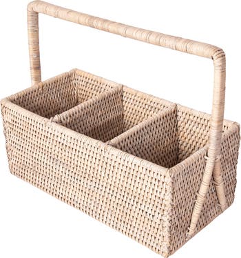 Artifacts Rattan 3 Section Caddy/Cutlery Holder with Handle