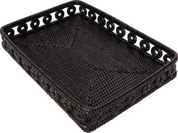 Medium 17"x12x2.75" Large 21"x14x2.75" Enjoy the timeless charm of our New Artifacts Rattan™ Inna Design Tray, a unique fusion of functionality and artistry. Each tray, handcrafted by skilled artisans using ancient Burmese weaving methods, is a testament to the rich craftsmanship of Burmese rattan, a durable and sustainable material. This exquisite Rattan Rectangular Tray is more than just a serving tray; it's also a versatile piece that will up your hosting game. It can be used to serve appetizers, showcase desserts, hold drinks, or even display jewelry. This tray is not only functional, but it also makes an eye-catching decorative accent for your coffee table or dining room centerpiece. Our rattan products are handmade, each piece is unique; therefore, slight variations and imperfections exist.