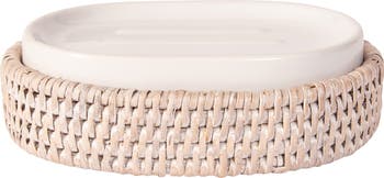 Artifacts Rattan Rattan Oval Soap Dish with Ceramic Insert
