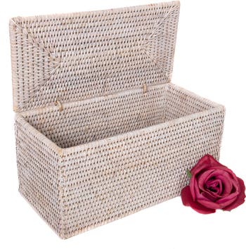 Artifacts Rattan Rectangular Double Toilet Roll Holder with Hinged Lid
