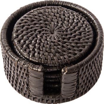 The 7-piece set includes 6 Coasters and Box Coaster Dimensions: 4"x4" Our hand woven round rattan coasters offer a great way to both decorate and protect your table. Easy to clean, stylish, and elegant, this 7-piece set includes 6 coasters and a box to store them. Not only great for the dinner table, but our rattan coasters also work well on any table you wish to protect around the house. Products are handmade and each piece is unique; therefore, slight variations and imperfections exist.
