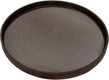 Artifacts Rattan Round Serving-Ottoman Tray with Glass Insert