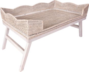 Artifacts Rattan Scallop Design Breakfast Tray with Wooden Legs