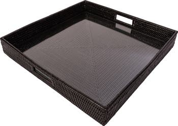 Small 16"x 16"x 3" Medium 18"x 18"x 3" Large 20"x 20"x 3" Our square rattan serving and ottoman trays will instantly add a gorgeous touch to any room of your home. Adding this hand-woven tray to your décor brings both decorative and functional style plus a quick and easy way to change up the look of any room. Use it to organize your coasters and remotes, set a table, serve drinks, or just add a new elegant touch. Products are handmade and each piece is unique therefore slight variations and imperfections exist.