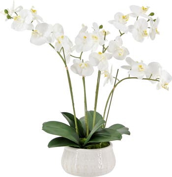 Add a touch of elegance to your home with our lifelike 23" faux Phalaenopsis orchid, featuring four beautifully crafted stems available in either white or orange.