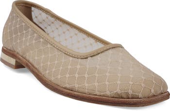 A pronounced square toe and mesh upper add contemporary intrigue to a poised pump elevated by a low block heel.
