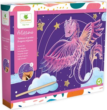 Sycomore Artissimo – L Scratch Art: Cuddly Dragons – 5y+ Enter a world of fantasy and fun with the Artissimo L Scratch Art – Cuddly Dragons set! Kids can reveal bright, colorful dragon illustrations by gently scratching away the top coating of each board. This magical, mess-free craft encourages creativity, patience, fine motor skills, and artistic expression. Perfect for quiet time, travel, rainy days, or gifting to young dragon lovers. Specifications: Color: Multicolor Age Recommended: 5 years and up Size (inches): 10.24 × 1.57 × 8.66 in Material: Scratch-art boards and wooden scratching stylus Weight (lbs): 1.01 Care Instructions: Keep away from water; scratch gently to avoid tearing; store boards flat for best results