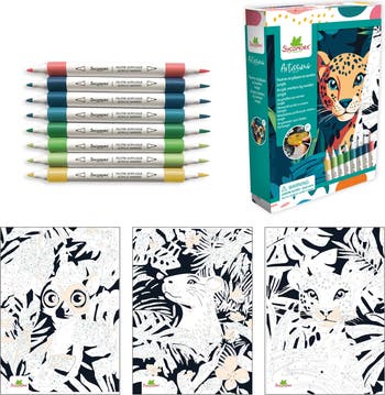 Sycomore Artissimo – S Acrylic Markers by Numbers: Jungle – 7y+ Bring the wild jungle to life with the Artissimo S Acrylic Markers by Numbers – Jungle set! Children can create vibrant jungle scenes by following numbered sections with the included acrylic markers. This fun and guided painting activity encourages fine motor skills, color recognition, concentration, and creativity. Perfect for quiet play, gifts, or introducing young artists to acrylic painting. Specifications: Color: Multicolor Age Recommended: 7 years and up Size (inches): 6.30 × 1.57 × 8.66 in Material: Paper cards, foam/self-adhesive mosaic stickers, and sturdy cardboard box Weight (lbs): 0.55 Care Instructions: Keep away from water when not painting; allow painted areas to dry completely