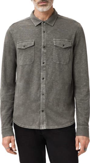 Pointed accents and polished snaps cinch the relaxed Western vibe of a shirt made of an organic-cotton knit that's slubbed and faded like a well-loved favorite. Wear it on its own or layered and open to change up your look every time you go to the rodeo.