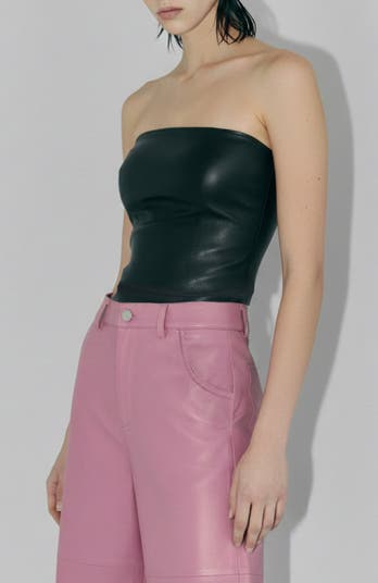 Cut from body-hugging stretch leather, Cinematique has a sharp, strapless design and a cinched waist for maximum flatter. Pair with our Jordan Recycled Leather Skirt for a full look.