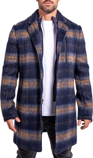 An eclectic-chic blend of classical and high-tech outerwear aesthetics, this peacoat begins with an allover plaid pattern that is blurred by the brushed texture. Zip pockets and cuffs bring a moto edge to the detailing, while a zip-out quilted dickey boosts the style's outdoor-adventuring potential.