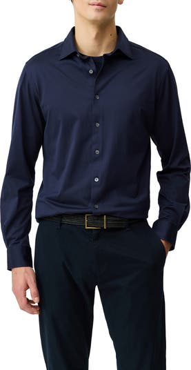 You'll look sharp in a snap with this cotton button-up shirt cut from subtly lustrous mercerized cotton in a sports fit that's made to move.