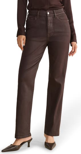 A matte coating lends a sleek, leather-like look to superstretchy straight-leg jeans that lift, smooth and sculpt for day-to-night comfort.