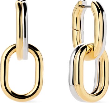 Get two looks in one with these mixed-metal earrings boasting oval-shaped hoops with removable bottom links.