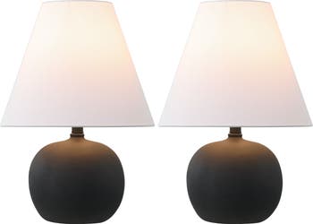 Make a modern statement with our pair of minimalist, geometric lamps. Heavy resin bases in a classic gourd shape are topped with cone-shaped linen shades. The chic matte finish adds contrast to a bedroom, office or living room.