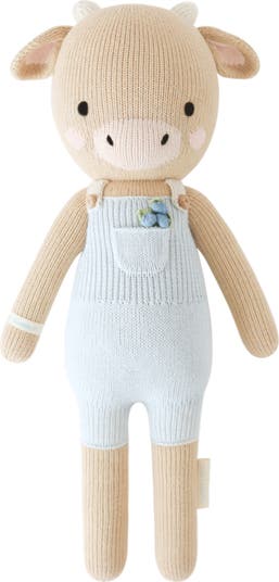 An heirloom-quality baby gift, this sweet cow companion is hand-knit from Peruvian cotton and stuffed with hypoallergenic fill, making it extrasoft and cuddly.