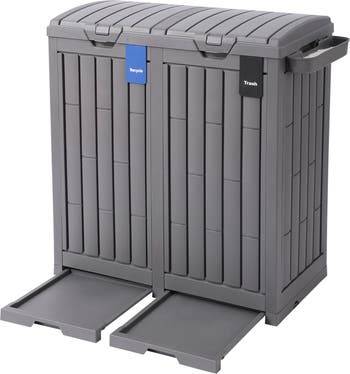 - 62 GALLON DUAL COMPARTMENT DESIGN: Features two separate 31-gallon bins with sorting signs for trash and recycling, making waste separation convenient and organized for outdoor use. Compatible with 33–39 gallon trash bags.