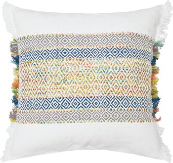 The Ashley Pillow's multicolor diamond design and spirited fringe embodies boho-chic style at its best. This large throw pillow is hand woven by skilled artisans; bringing the rainbows of your childhood up-to-date with a mature and modern twist.