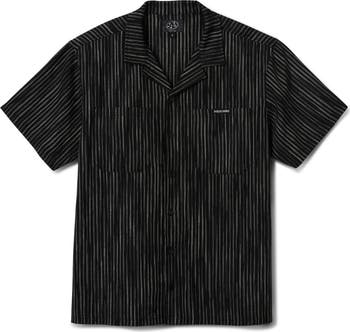 Vertical stripes add visual depth and dimension against the breathable linen-and-cotton fabric that makes this camp shirt a getaway essential that'll see you stylishly from the pool deck to dinner at the resort.