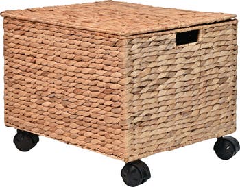 HAPPIMESS Ashton Classic Farmhouse Handwoven Hyacinth Rolling Filing Basket with Lid and 360 Degree Lockable Wheels, Main, color, Natural