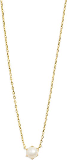 Shine sweetly with this dainty cultured-freshwater pearl pendant necklace plated in warm 14-karat gold.