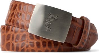 Embossed Croc Belt Golfman Plaque Buckle