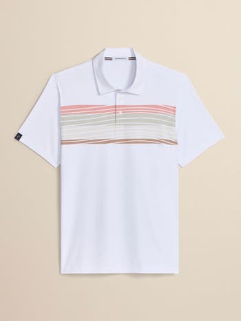A light, graphic polo designed for warm rounds and easy wear. The Tide Polo is made from a smooth, lightweight performance fabric with stretch, finished with an allover print that adds movement and interest while staying subtle on the body. Comfortable, breathable, and easy to keep in rotation.