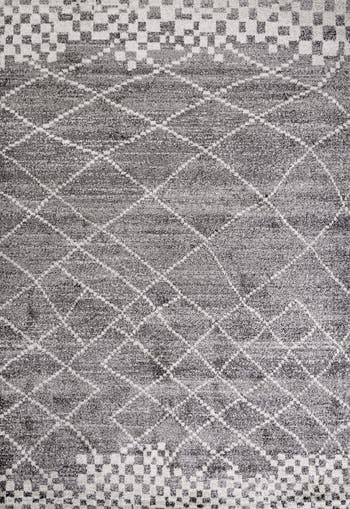 Inspired by vintage Moroccan rugs, our modern geometric rug is ideal for a minimalist interior. The random diamond pattern is woven in ivory on a gray background, and bordered with offset squares. Mingled threads create an understated, vintage look. Add some Bohemian style to your living room, bedroom or entry with this easy-care rug.