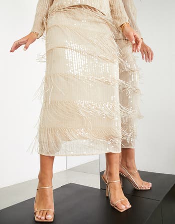 Sequin Fringe Pencil Skirt