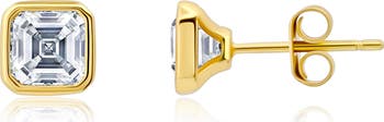 An Asscher-cut cubic zirconia gleams from its bezel setting in these minimalist art deco–inspired stud earrings.