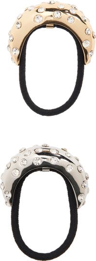Light-reflecting crystals adorn the gleaming cuff of these ponytail holders that instantly bring an air of glamour to your look.