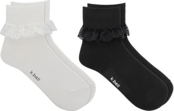 Frilly lace trim lends movement to these supersoft quarter socks coming in an assorted pack of two pairs.