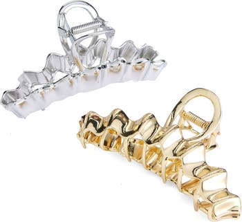 Bring shimmer and shine to your updo with these beautiful jaw clips finished in a polished metallic plate.