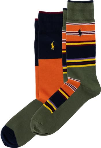Assorted 2-Pack Multistripe Cotton Blend Dress Socks