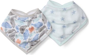 Keep baby's clothes clean and dry at mealtime with this pack of bandana bibs made from cotton-enriched muslin with an absorbent terry backing.