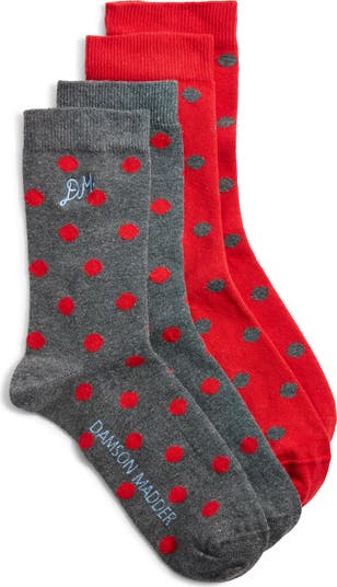 Playful polka dots pounce all over the soft organic-cotton-blend knit of these stretchy crew socks accented with monogram embroidery near the ribbed cuff.