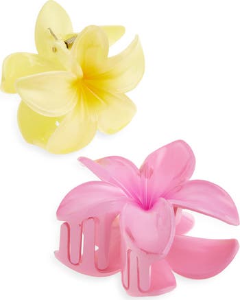 Glossy petal-like curves give bloom-inspired form to these plumeria-shaped jaw clips designed to secure your hair comfortably in place.